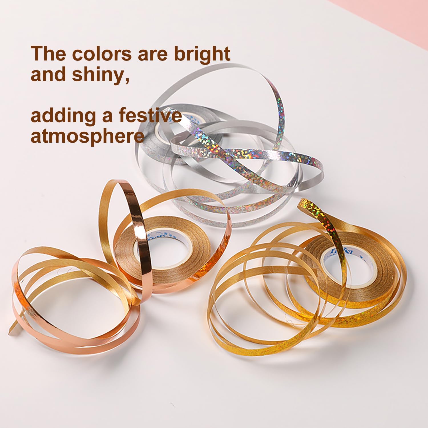 Product DetailsMaterial: PVC laser plasticColor: Gold, Silver, Rose Gold, Rose Red, Blue, Green, Red, Purple, BlackQuantity: 18Size: length 10m/roll, width 0.5cmWeight: 3g/pcUses: gift wrapping ribbons, decoration supplies for various partiesfeaturesLaser ribbons in a variety of colors for you to choose, the set is rich in content, versatile in use, easy and safe to use