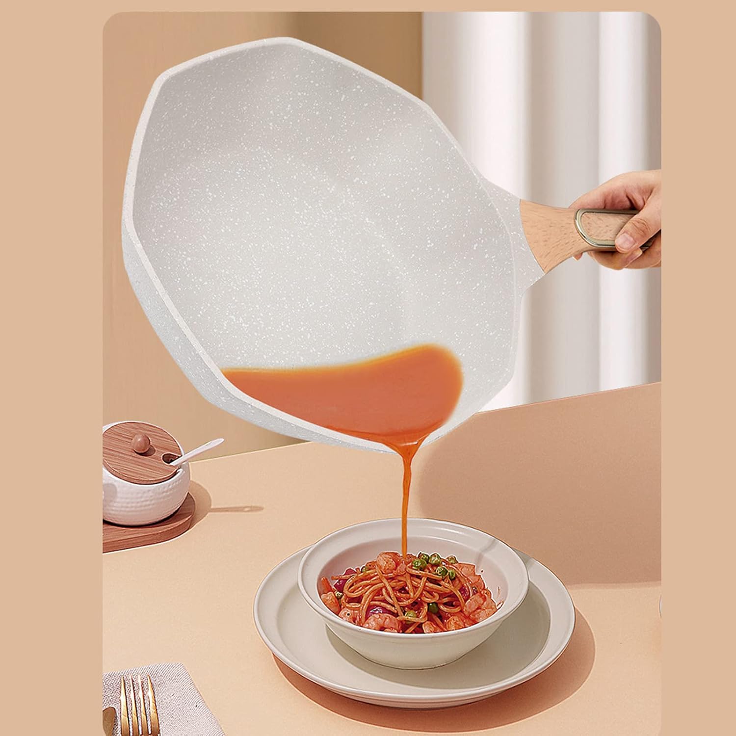 Specification:Item Type: Medical Stone WokMaterial: Aluminium alloyGross Weight: 2685g/94.7ozPan Diameter: 32cm/12.6inPackage List:1 x Medical Stone Wok1 x Cover